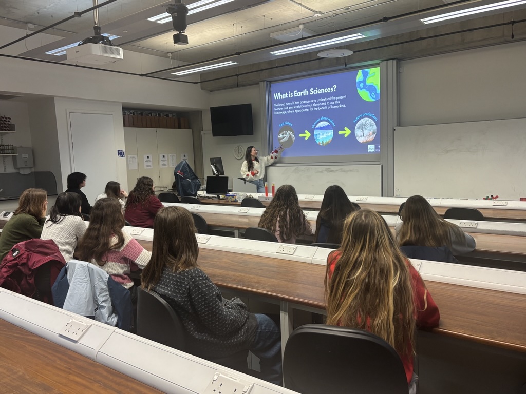 Students explored the Earth Sciences labs with Dr Charlie, handled volcanic rock samples and even tried out some volcano‑themed experiments
